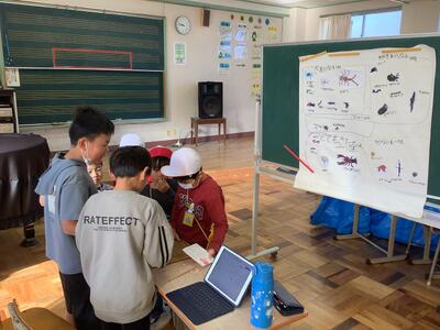 2年生の生活科の授業では、育てているハツカダイコンを観察していました。実の色、葉の形、大きさなど、しっかりと観察して、絵や文で表現することができました。