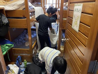 自然教室の2日目の朝の様子です。身支度、朝食をすまし、2日目に臨みます。
