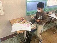 図工「ことばのかたち」の学習では、物語を読んでお話の世界を描きます。2年生は、「スイミー」の世界を描きます。今日は魚たちの群れを型抜きを使って表す練習をしました。みんな夢中になって取り組んでいました。