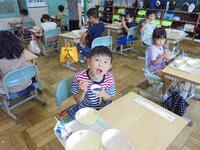 今日は、夏休み前最後の給食でした。人気メニューの青椒肉絲には、2年生が育てたピーマンが入っていて、2年生の子供たちは誇らしげに食べていました。