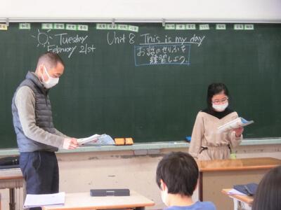 「朝食を食べた」、「歯みがきをした」など、朝起きてから自分がしたことを、英語で発表しました。ジェスチャーを交えながら分かりやすく発表をしている子が多くいました。