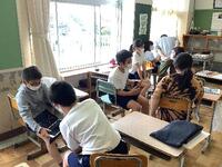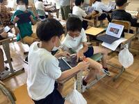 英語の学習で、自分の宝物を友達と紹介し合いました。「My treasure is ○○.」と、自分が撮った宝物の写真を見せながら、英語で紹介することができました。