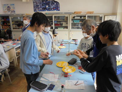 理科の授業で、「くらりか」の皆さんが、電気について詳しく教えて下さいました。子供たちは、レモンを使って電気を作れることに驚き、実験を通して楽しく学ぶ事ができました。くらりかのみなさん、ありがとうございました。
