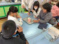 「金属は、あたためられたり、冷やされたりすると、体積は変わるのだろうか。」という課題のもと、実験を行いました。鉄球が穴を通るのを見ると、子供達はとても驚いていました。グループで協力し、安全に実験を行うことができました。