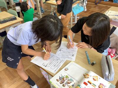 3年生の外国語活動の様子です。お友だち同士であいさつをしたり、自分の名前を英語で紹介し合ったりしました。最後は、Head shoulder♪ の歌を、振り付けも加えてみんなで歌いました。