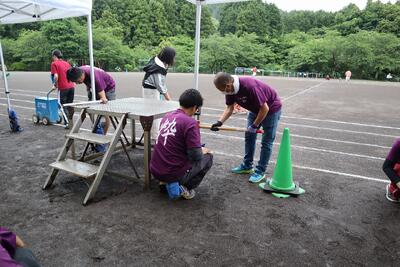 朝早くから、「粋なおやじの会」の皆様が、沢地小運動会のためにお力をお貸し下さいました。テント設営からテーブル、椅子の設置まで短時間で、ご協力くださり、なんとか予定された時刻に運動会をスタートすることができました。また閉会式後には、テント撤収と遊具のロープ外し、テーブルと椅子の撤収など、お力を貸していただきました。いつも本当にありがとうございます。感謝の気持ちでいっぱいです。たくさんの方々に支えられて、無事沢地小運動会を開催することができました。本当にありがとうございました。