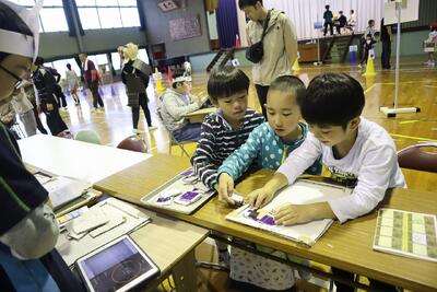 さすが5,6年生のお店です。アイデアいっぱい、学習の内容も入れながら、子供たちが楽しめるお店の内容になっています。お店番をする子供たちも、お客さんの子供たちも夢中で活動しています。5年1組「The アスレパーク」5年2組「お菓子な森の博物館」6年1組「進め!体探検隊」6年2組「歴史にドキリ」です。
