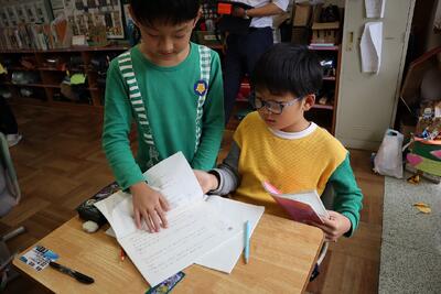 3年生の国語の授業では、物語文「ちいちゃんのかげおくり」の教材をつかって、登場人物の心情について学習活動を進めています。自分の考えをノートに書いたり、発表したりしながら学びを深めていきます。