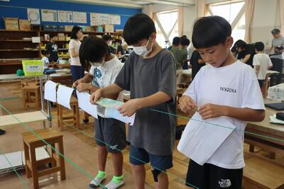 5年生の図工の授業では、モダンテクニックをつかって、自分の心の表現と合う色や形を生み出す学習活動を進めています。今日の授業では、自分の作品について紹介し合ったり、追究しあったりして、表現する楽しさを味わっていました。どんな作品ができあがるか、楽しみですね。