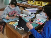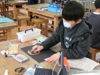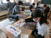 卒業制作で取り組んでいる「文箱作り」。彫りの作業が終わった児童は、ニス塗りの作業に入りました。子供たちはムラができないように、丁寧にニスを塗っていました。