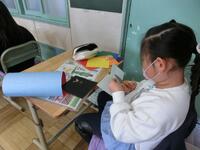 1年生の教室を覗くと、「さんすうボックス」に入っている計算カードを使って、足し算や引き算の練習に一生懸命取り組んでいました。カードをめくる速さがとても速くなっていて、これまで何度も繰り返し練習してきた様子が窺えました。