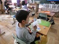 「こま回し」、「お手玉」、「だるま落とし」など、教室で昔の遊びを楽しみました。こまを上手に回せる子が増え、床ではなく、椅子の上で回すことに挑戦している子もいました。