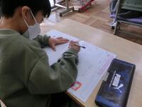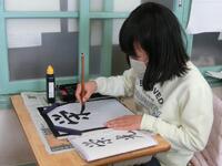「山里」という字を練習しています。お手本をしっかり見ながら、良い姿勢で集中して取り組んでいました。毛筆の学習が始まってもうすぐ一年。みんな準備や片付けもとても上手になりました。