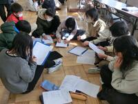 地震によってどのような災害が起こるのか、過去の体験を思い出したり、資料を調べたりしながらみんなで話し合いました。教師が、「沢地小の校舎も何年か前に、大地震に備えて耐震工事をしたんだよ」という話をすると、子供たちはとても興味深そうに話を聞いていました。