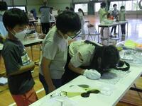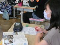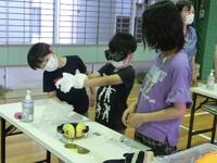 ゴーグルや軍手などを身に付けて、高齢者の擬似体験をしました。高齢になると、視野が狭くなったり、体が思うように動かなくなったりすることを、子供たちは体で感じ取っていました。