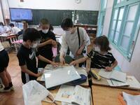 12日木曜日の委員会活動の様子です。計画委員会では、「1年生と仲良くする会」で発表した運動会のスローガンの横断幕を作りました。てきぱきと行う姿、頼もしい限りです。