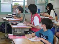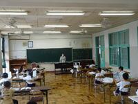 三島市社会福祉協議会の方にお越しいただき、福祉の授業をしてもらいました。この日のテーマは高齢者に対する福祉でした。子供たちはメモをとりながら真剣に話を聞き、福祉の大切さを一生懸命理解しようとしていました。