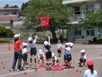 体育の授業では、運動会の練習をしています。玉入れの練習では、元気にチェッコリを踊りながら一生懸命に玉を投げました。本番でも練習の成果を発揮してほしいです。