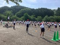 5年生は個人走と団体競技を行います。熱中症を防ぐため、マスクを外して走っていますが、走り終わって息を整えるときには友達と離れるなど、感染症対策も頭に入れながら活動しています。