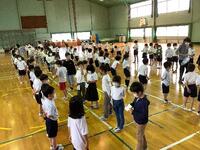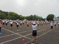 今朝は、2・4・6年生がラジオ体操や応援席への移動の仕方を練習しました。6年生がお手本となり、その姿を見ながら2年生、4年生もしっかりと行動できました。