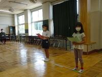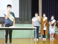 1年生からのお礼の言葉の様子です。1年生の代表としてとても堂々としていました。計画委員会の企画が楽しかったと聞いて、計画委員会の5年生、6年生も嬉しそうな表情を浮かべていました。
