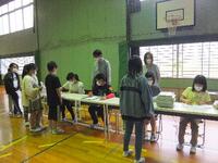 6年生の社会科の公民分野の学習として、選挙管理委員会の方が選挙について教えて下さいました。給食のデザートを決める模擬選挙も行いました。4人の代表者が各デザートのよさを話し、その意見を聞いた児童が、本物の記載台や投票箱を使って投票しました。