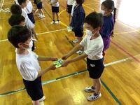 運動会へ向け、リレーのバトンパス練習を行いました。バトンはどちらの手に持つのか、リードはどのようにするのかなど、一つ一つの動きをみんなで確認しました。