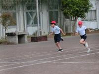 50m走のタイムを計ったり、バトンパスの練習をしたりしました。小学校生活最後の運動会へ向けて、これからも全力で頑張ってほしいと思います。