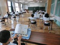 密を避けるため、音楽室よりもさらに広い沢地ルームへ移動して授業を行いました。この日は鍵盤ハーモニカで「かっこう」を弾く練習をしました。先生からのアドバイスを聞きながら練習を繰り返し、最後はみんなでとても上手に演奏することができました。