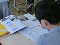「くらしの中の平和主義とは?」をテーマに、平和について考えました。子供たちは、「戦争」「武力」「国際協力」なとといった言葉をキーワードに、自分なりの考えをワークシートにまとめていました。