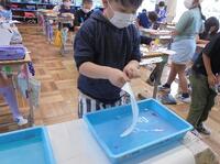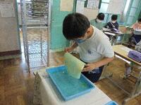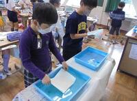 図工「絵の具でゆめもよう」の学習では、図工で役立つ様々な技法を学習しています。今日はマーブリングに挑戦しました。できあがったきれいな模様に子供たちは大喜びでした。