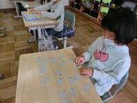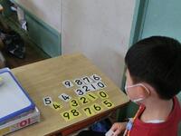 算数科「いくつといくつ」の学習では、「さんすうボックス」に入っている数字カードを使って学習に取り組んでいます。この日は、そのカードを使って「神経衰弱」などのゲームをしながら、みんな楽しく学習に取り組んでいました。