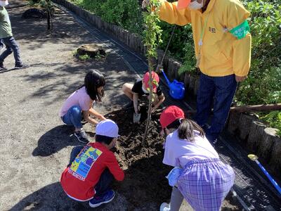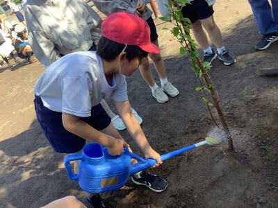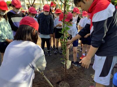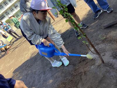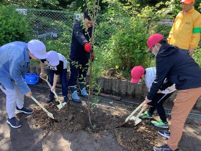 全部で4本の桜の木を植樹しました。5年後、10年後にはきっと大きく成長し、満開の花を咲かせてくれることでしょう。