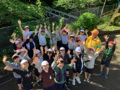 植えた苗木の前で、クラスごとに記念写真を撮りました。