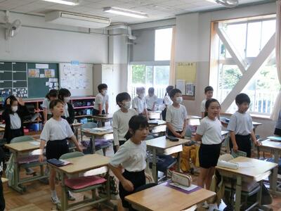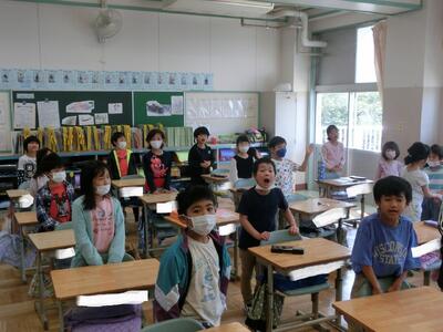 今年度、創立50周年記念ということもあり、音楽委員会主催で、毎月、「全校で校歌を歌う会」を行うことになりました。今日は第1回目ということもあり、子供たちは張り切って歌っていました。
