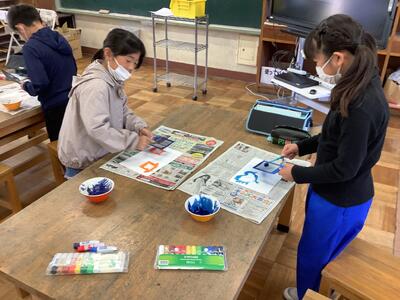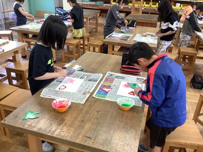 4年生の図工では、いろいろな技法を学習しています。今日はスパッタリングに挑戦しました。