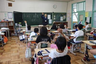 3年生の国語の授業では、子供たちが良い姿勢で、いきいきとわかったことを発表しています。ぴしっと伸びた手が、やる気満々ですてきです。