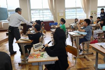 3年生の音楽の授業では、子供たちがリコーダーをつかって、きれいな音色を響かせていました。リコーダーの学習は3年生から始まります。子供たちは目を輝かせながら、夢中で取り組んでいます。指の腹をしっかりと穴に押しつけると、丸く跡がつきます。上手に音あなを押さえている証拠です。タンギングを意識しながら「シ」の音を吹いてみました。みんな素敵な音を出すことができています。友達の頑張る姿を見て、聴いて、応援したり拍手を送ったりできる3年生の子供たち、すてきです。