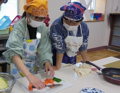 家庭科の調理実習で、野菜炒めを作りました。野菜を慎重に切ったり、火加減に気を付けて炒めたり、お皿に盛り付けたりと、班の中間と協力し、どの子も真剣に取り組んでいました。