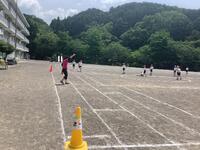 5年生の体育の授業でも運動会の練習が始まってきました。5年生では、「二人三脚」と「ボール運び」を2チームずつ交互に行うリレーを行います。