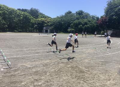 運動会が来週に迫り、どの学年も練習に力が入っています。4年生は、変化走の練習をがんばっていました。最後のシュートを1発で決められるかどうかが、勝負の鍵となりそうです。