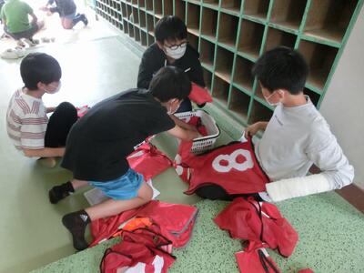 来週の運動会に向けた「係打合せ」が行われました。どの係も5,6年生が意欲的に取り組んでいました。
