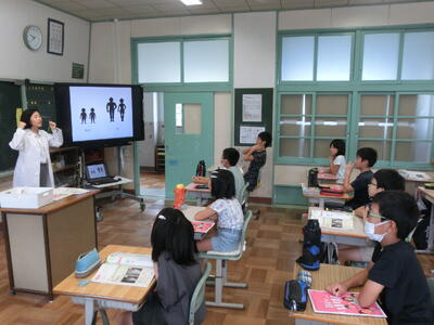 養護教諭が男女の体の違いについて授業を行いました。子供たちはちょっと恥ずかしそうにしながらも、真剣に授業を受けていました。