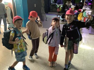 お弁当タイムの後は、館内でスタンプラリーをしたり、遊具で遊んだり、企画展の木のおもちゃで遊んだりしました。プラネタリウムでは、秋の星座について学ぶことができました。