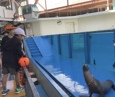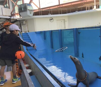 なんと、2年生の1人がアシカの輪投げショーのお手伝いに選ばれました!