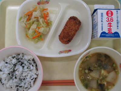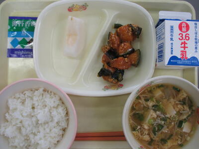 ★今日は十五夜こんだてです。十五夜は別名「芋名月」とも呼ばれます。給食では旬のさつまいもを使用した「さつまいもごはん」を炊きました。