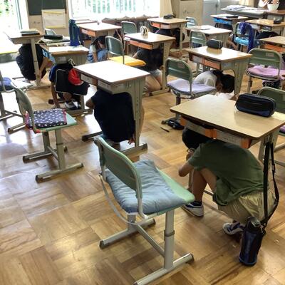 今日は、全校で「命について考える日」です。3時間目には地震が起きたことを想定し、避難訓練を行いました。先ずは、自分の身を守るために「一次避難」、揺れがおさまると、2次避難で体育館へ移動しました。「おかしも」の約束を守り、落ちついて行動できた沢地っ子です。8月には日向灘を震源とする地震が起き、初めて南海トラフ地震臨時情報(巨大地震注意)が発令されました。子供たちは、校長の話を真剣にしっかりと聞き、訓練の大切さについて考えることができました。避難訓練の後は、各教室で「命について考える」授業を行いました。