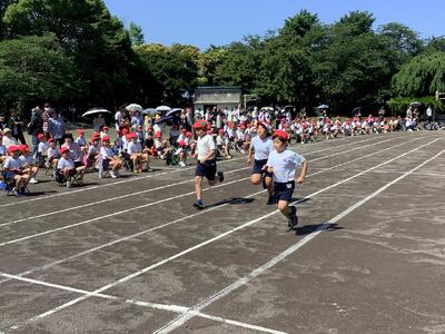 ラジオ体操後の徒競走「やってみよう!Let's run 120m!」では、120m走という長い距離でしたが、最後まで走りきる姿がとてもかっこよかったです。