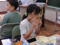 今日は給食に「ササミカツバーガー」がでました。コロナの感染対策もあり、お店のハンバーガーのように、袋に入れてから食べました。とても味が良かったようで、どの子も大きな口を開けてパンにかぶりついていました。
