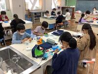 科学クラブの様子です。科学クラブでは、前回、今回と、「くらりか静岡」の皆さんが講師として来て下さいました。前回は万華鏡作りを、今回はiPadのスクラッチというアプリを使ってプログラミングを教えていただきました。くらりか静岡のみなさん、本当にありがとうございました。